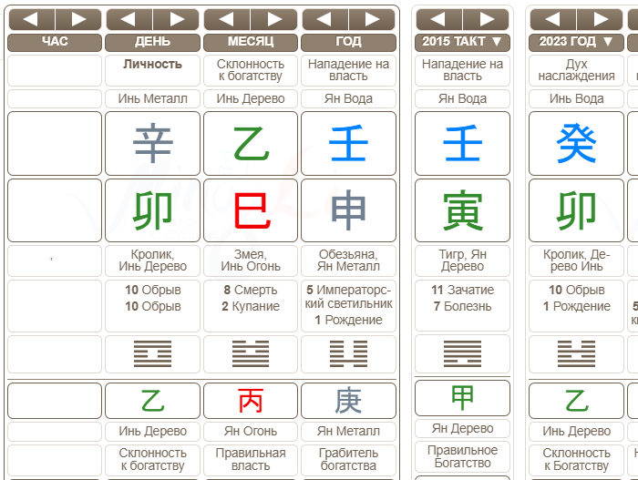 Итак, я нашла даты рождения и рассчитала карты Ба-Цзы и его и ее. И вот что я увидела:
